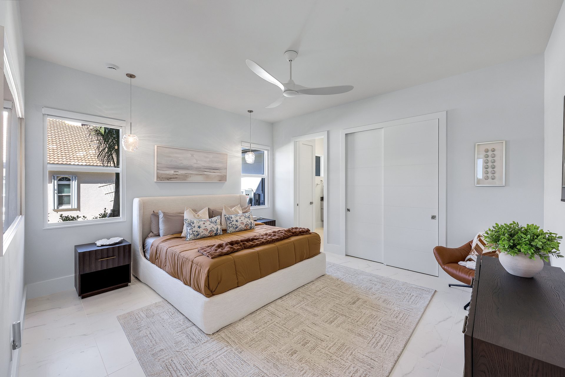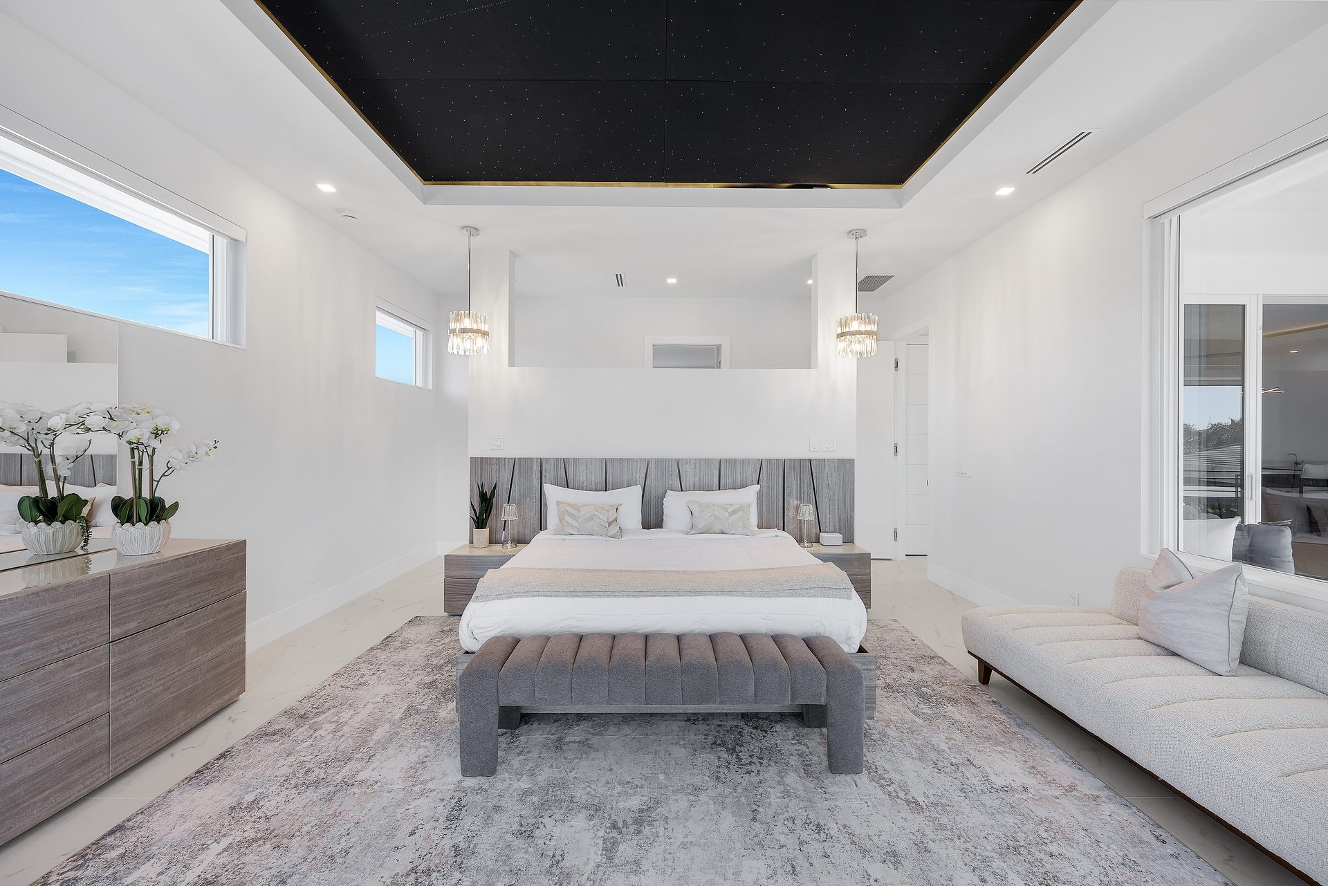 Die Villa verfügt über fünf geräumige Schlafzimmer, die jeweils mit einem King-Size-Bett, einem eigenen Badezimmer und einem TV ausgestattet sind. Alle Schlafzimmer und Bäder sind modern gestaltet und bieten viel Stauraum sowie angenehme Rückzugsmöglichkeiten.