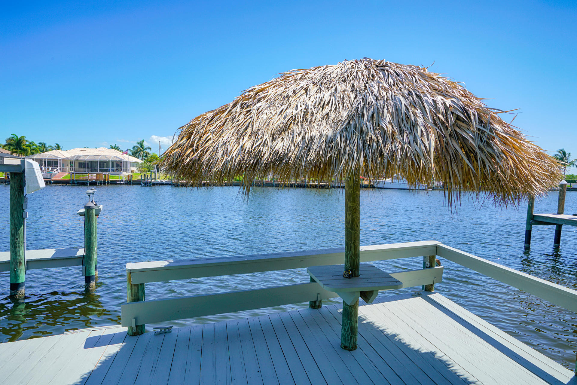 Am Tiki-Hut können Sie auf einer Sonnenplattform direkt über dem Wasser mit einem Blick auf die Kanäle und die Mangroven so richtig relaxen. Durch die Südausrichtung der Villa haben Sie Sonne bis zum Abend